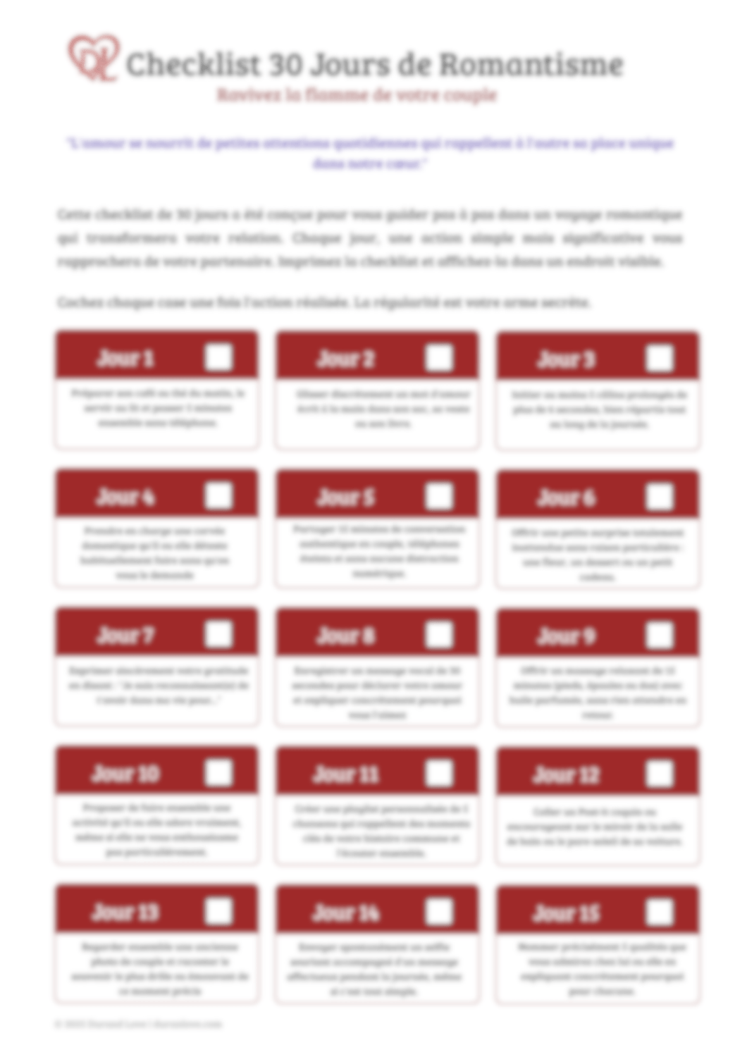 Votre plan jour par jour pour transformer votre relation en 30 jours :